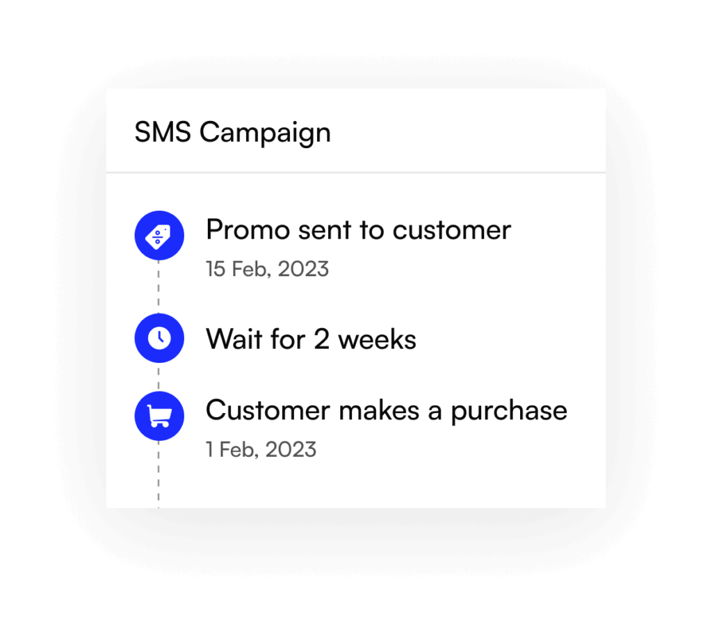 Create automated SMS campaigns based on user behaviour. Send promotional SMS messages based on the products the customer has previously purchased.